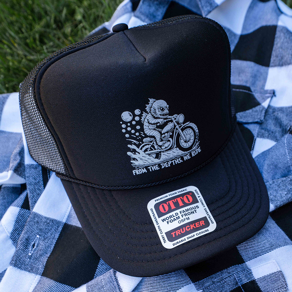 Creature Of the Black Lagoon - From the Depths, We Ride Black Trucker Hat