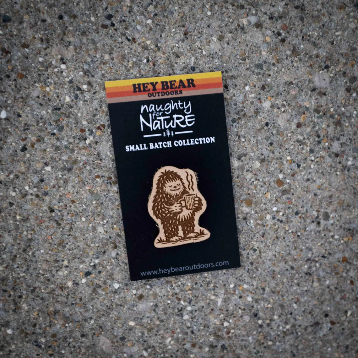 Bigfoot Drinking Coffee Wooden Lapel Pin
