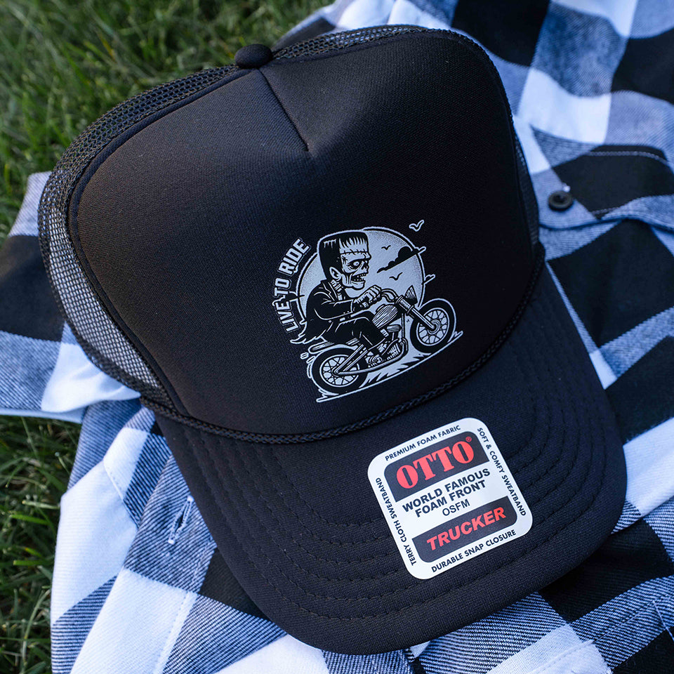 Frankenstein Live To Ride - Black Mesh OTTO Trucker Snap Back Cap