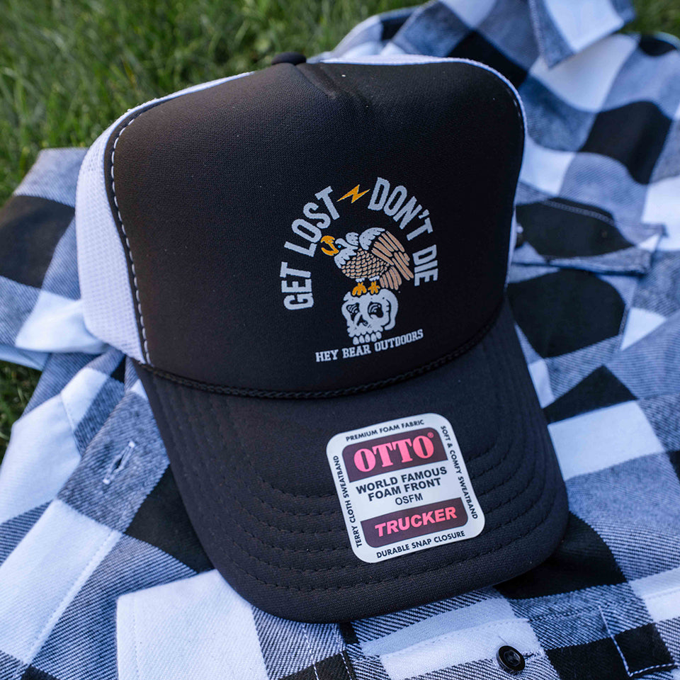 Get Lost - Don't Die - Black with White Mesh OTTO Trucker Snap Back Cap