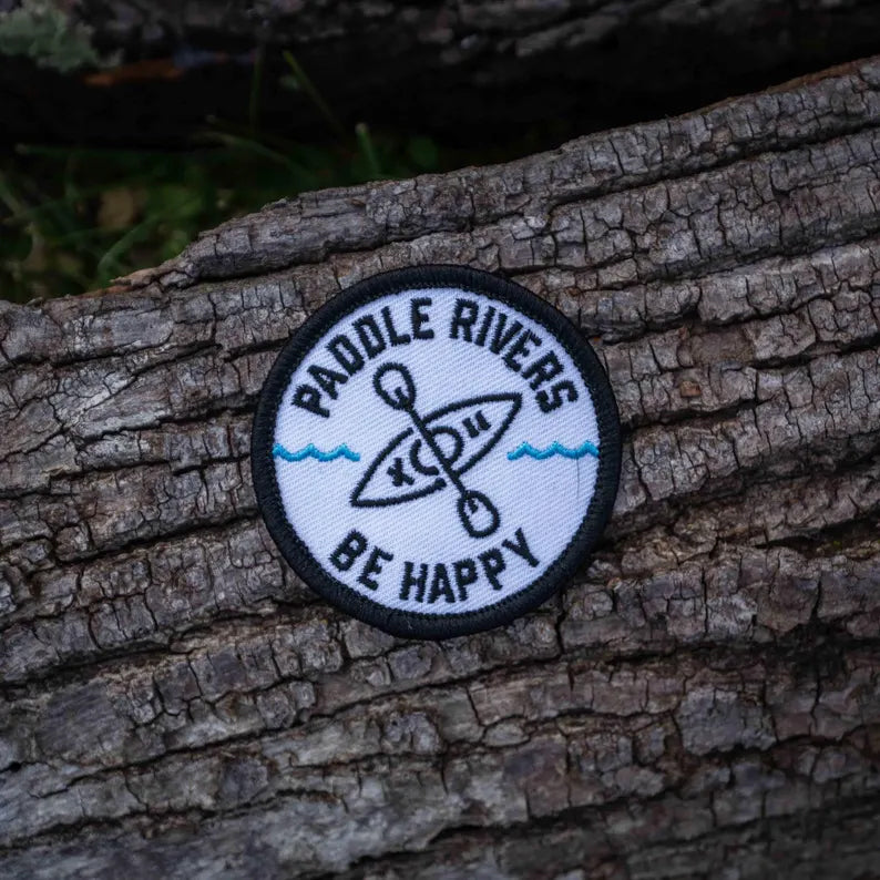 Paddle Rivers - Be Happy Kayaking Embroidered Patch