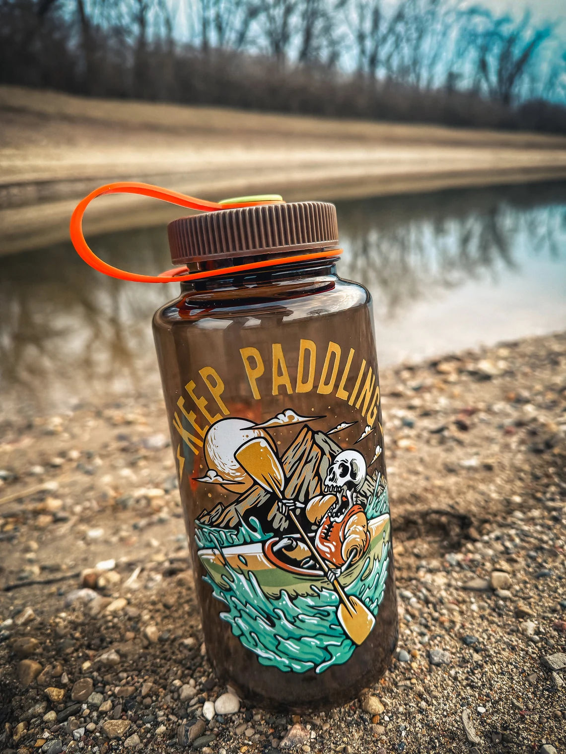 Keep Paddling Kayaking Skull Nalgene 32oz Wide Mouth Water Bottle