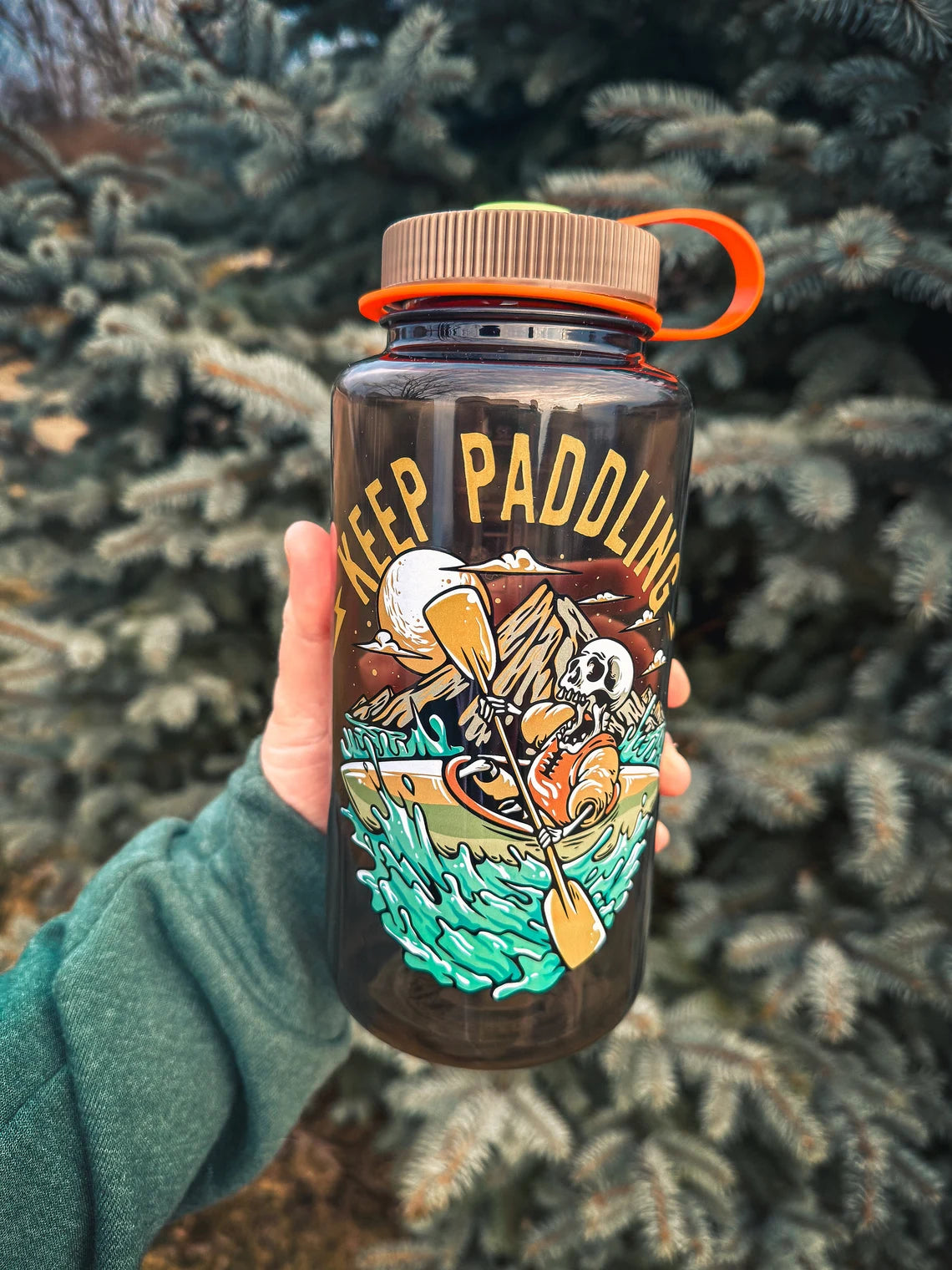 Keep Paddling Kayaking Skull Nalgene 32oz Wide Mouth Water Bottle - BROWN
